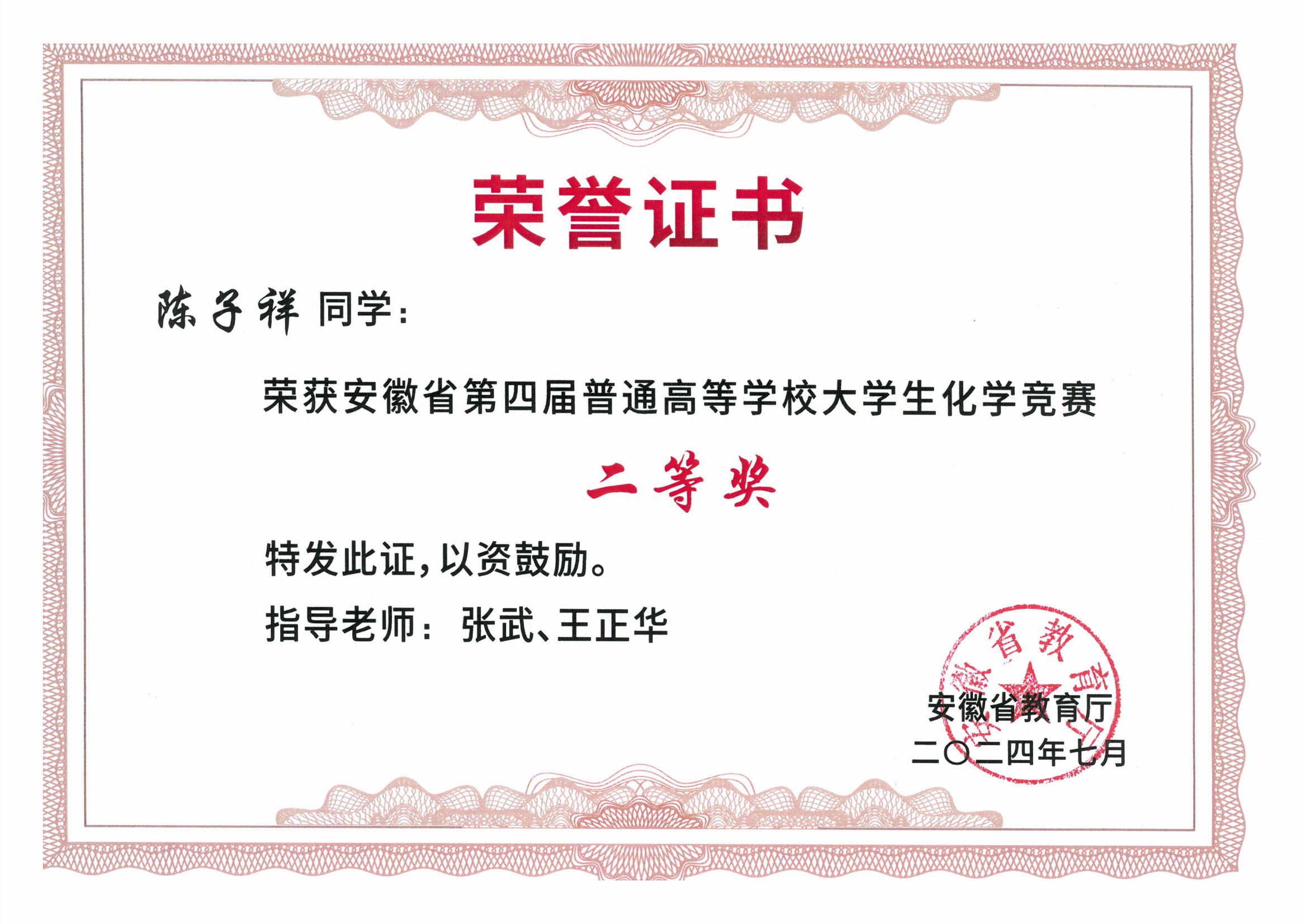 30 | 安徽省第四届普通高等学校大学生化学竞赛 | 安徽省教育厅 | 陈子祥 | 二等奖 | 张武、王正华 |
