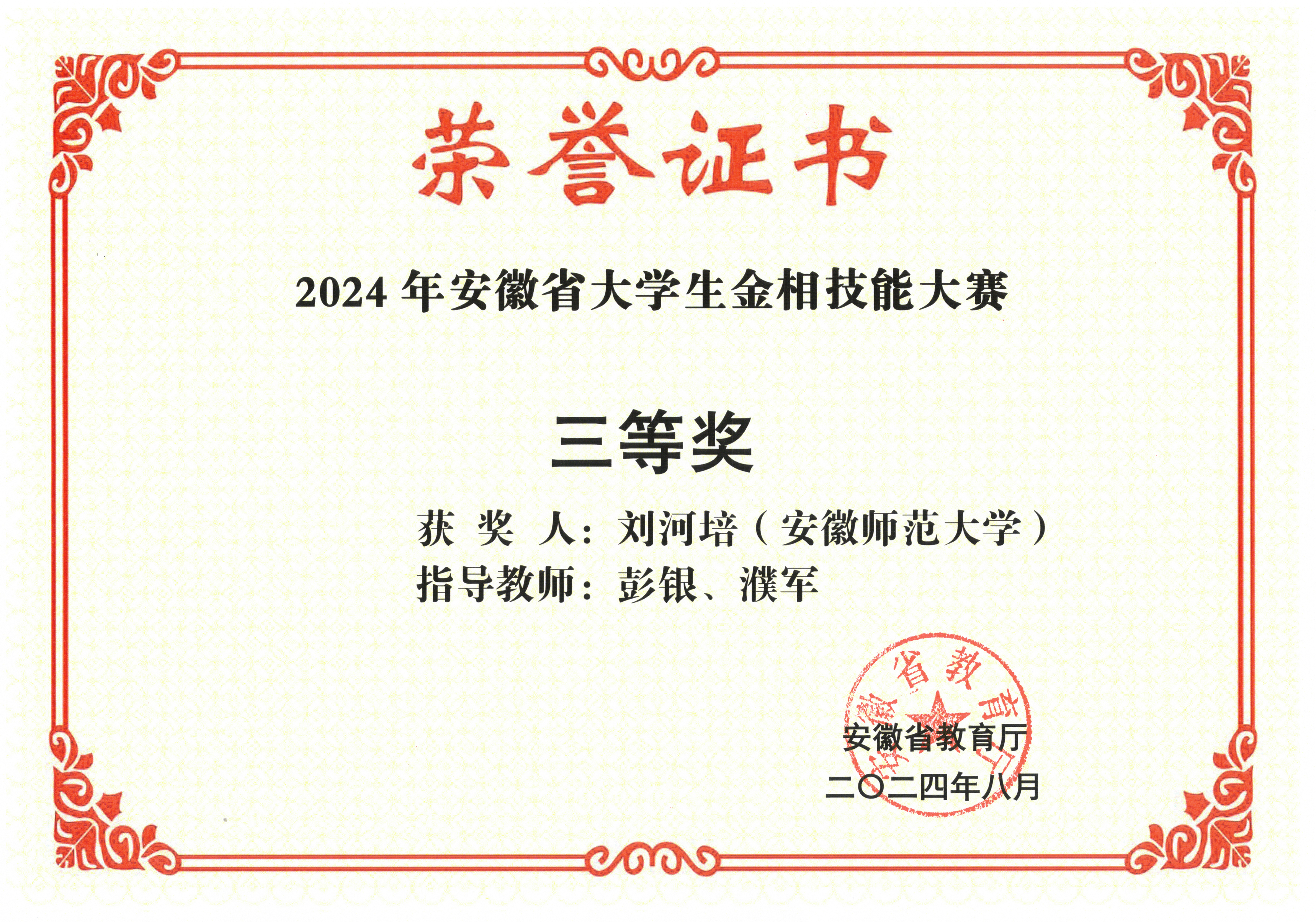 36 | 2024安徽省大学生金相技能大赛 | 安徽省教育厅 | 刘河培 | 三等奖 | 彭银、濮军 |