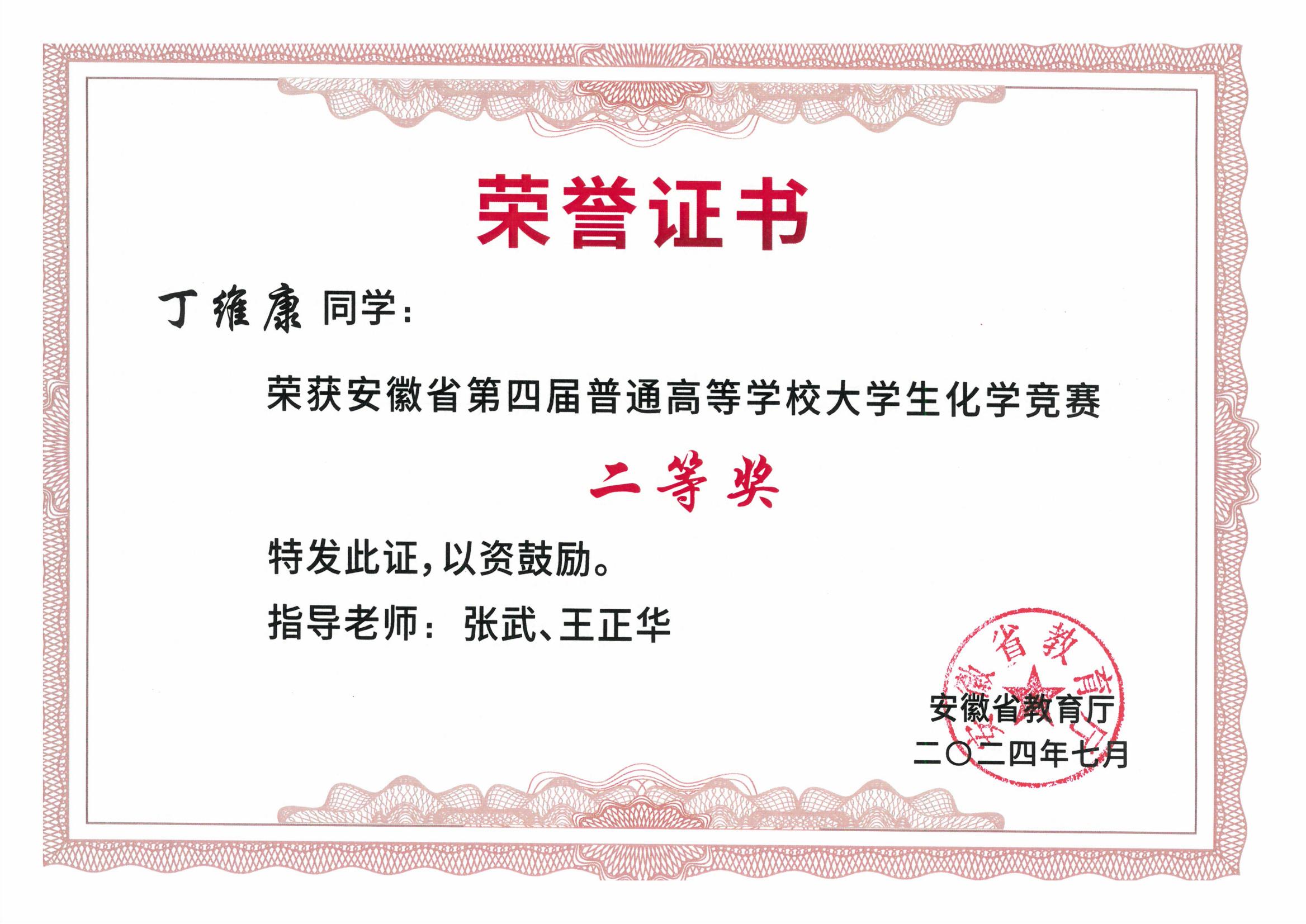 31 | 安徽省第四届普通高等学校大学生化学竞赛 | 安徽省教育厅 | 丁维康 | 二等奖 | 张武、王正华 |