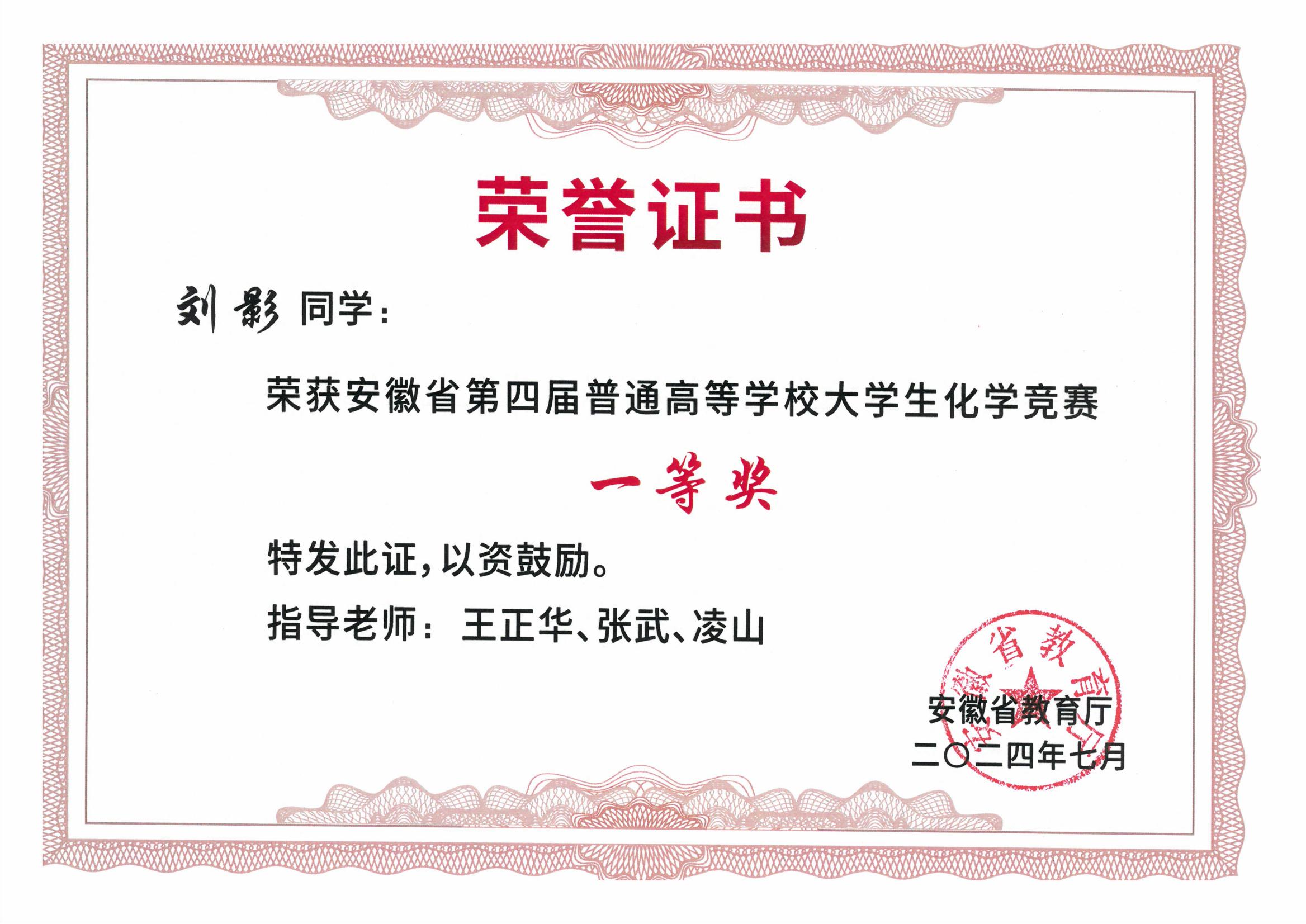 29 | 安徽省第四届普通高等学校大学生化学竞赛 | 安徽省教育厅 | 刘影 | 一等奖 | 王正华、张武、凌山 |